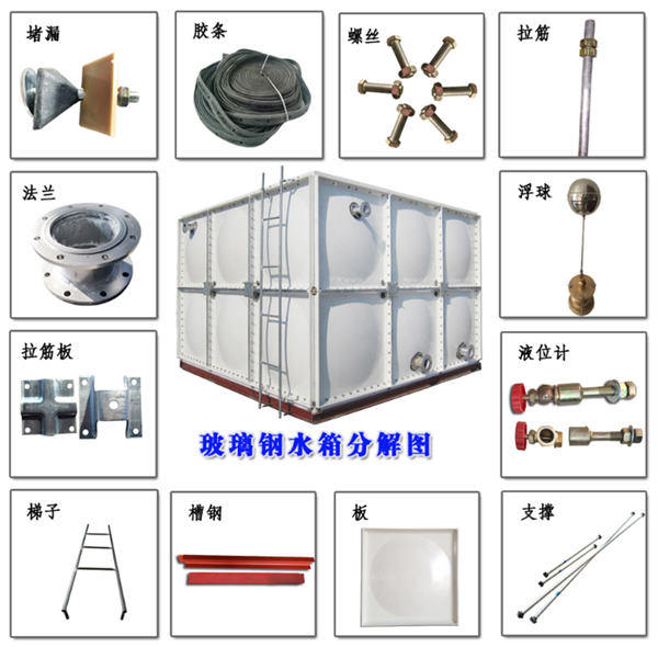 5、 玻璃鋼消防水箱標準配件包括:進水管法蘭,出水管法蘭,溢流管法蘭,污水管法蘭,通風孔,人孔,內外梯等。所有開口位置均可在現(xiàn)場指定,但相關管道路徑和數(shù)量,用戶在訂購時應提前指定;